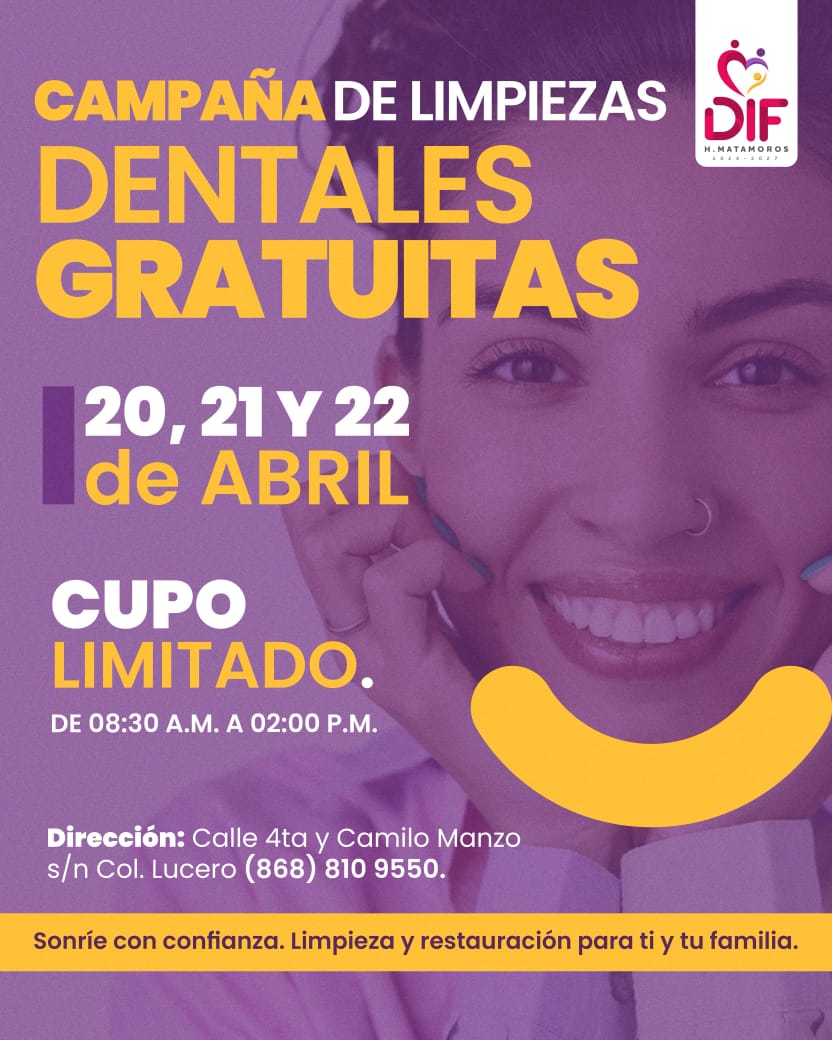 *DIF Matamoros anuncia campaña gratuita de limpieza y empastes dentales* Con el objetivo de promover…